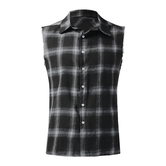 Ärmelloses Hemd - Casual - Kariert - Hemd zum Knöpfen - Herrenbekleidung
