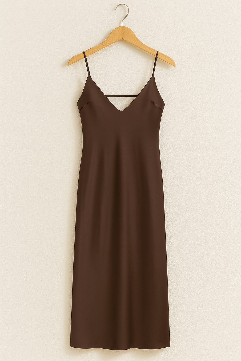 Der fließende Stoff streichelt sanft deine Haut, während die zarten Träger und der elegante Glanz dich strahlen lassen – ideal für den Urlaub, Abendessen am Meer oder stilvolle Gartenpartys.